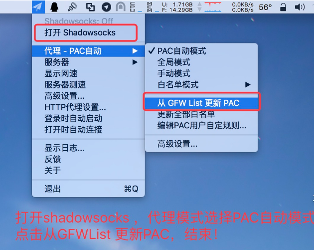 如下图,设置代理模式,并更新pac,开启自由上网之旅